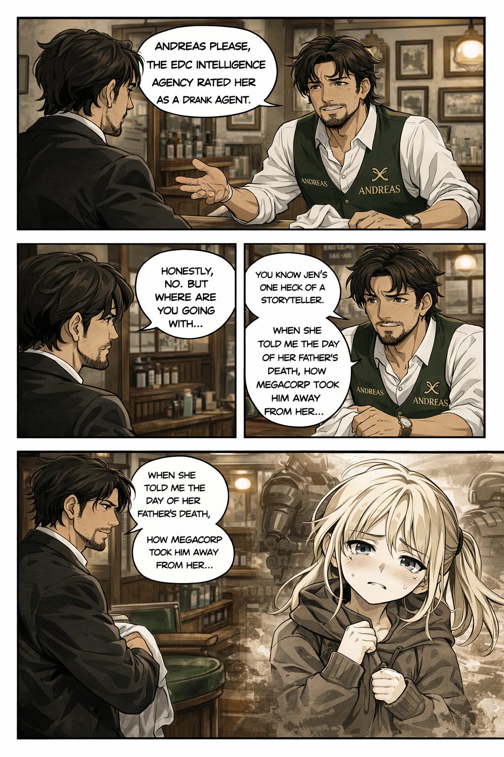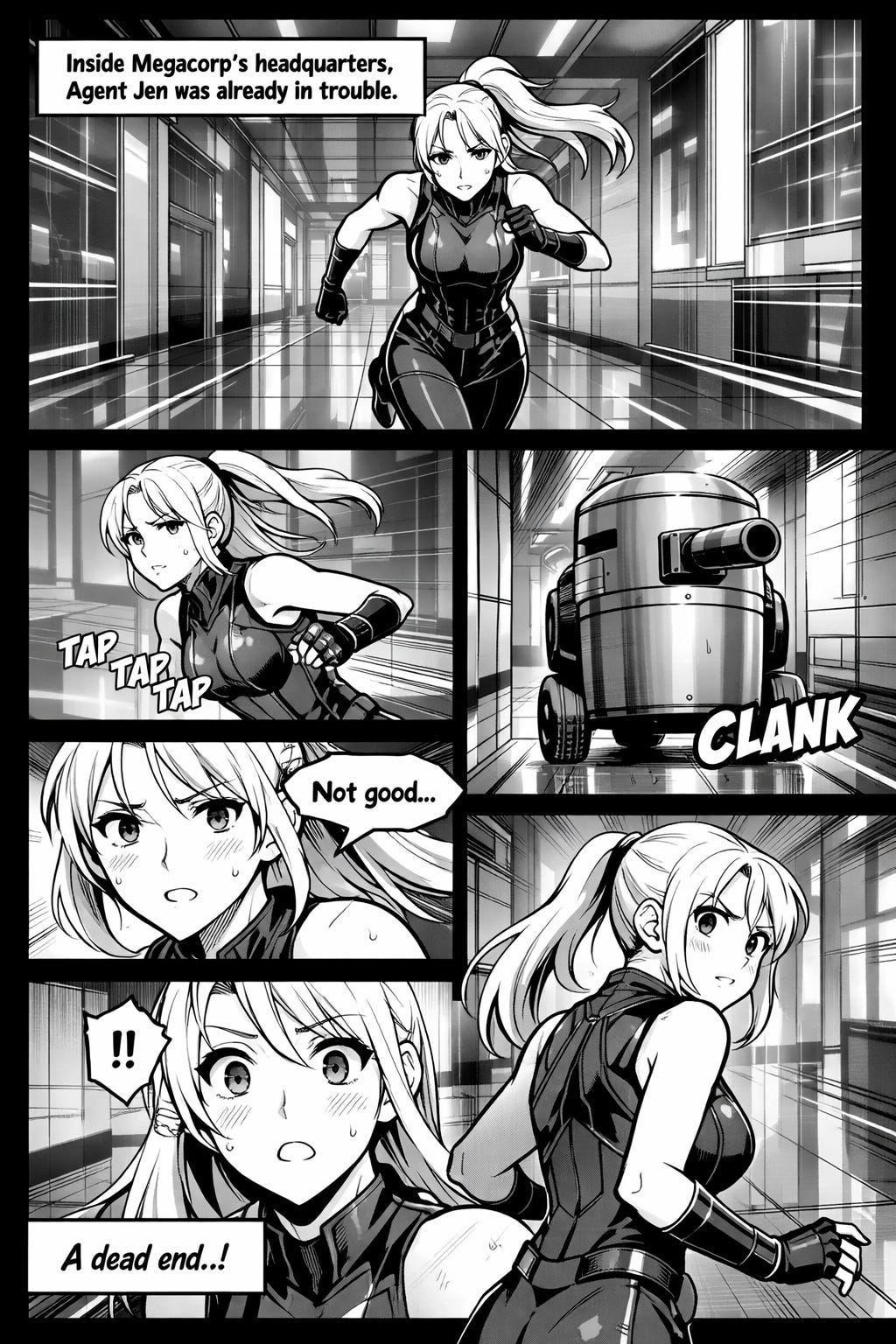 So I have been playing around with ChatGPT to make comic book versions of my Agent Jen stories. Why this particular series? Because out of all my protagonists, Agent Jen’s the one whom I’ve had the most concrete vision for; as in, I know how she’s supposed to look. I mean, I’ve used the robot to visualize my characters before (like Aeneas Aquilanus in the cover of my novel Inquisitor’s Promise), but I’ve always understood them as acceptable compromises rather than something final. With Agent Jen, how she’s been visualized is 100% in line with my vision of the character.