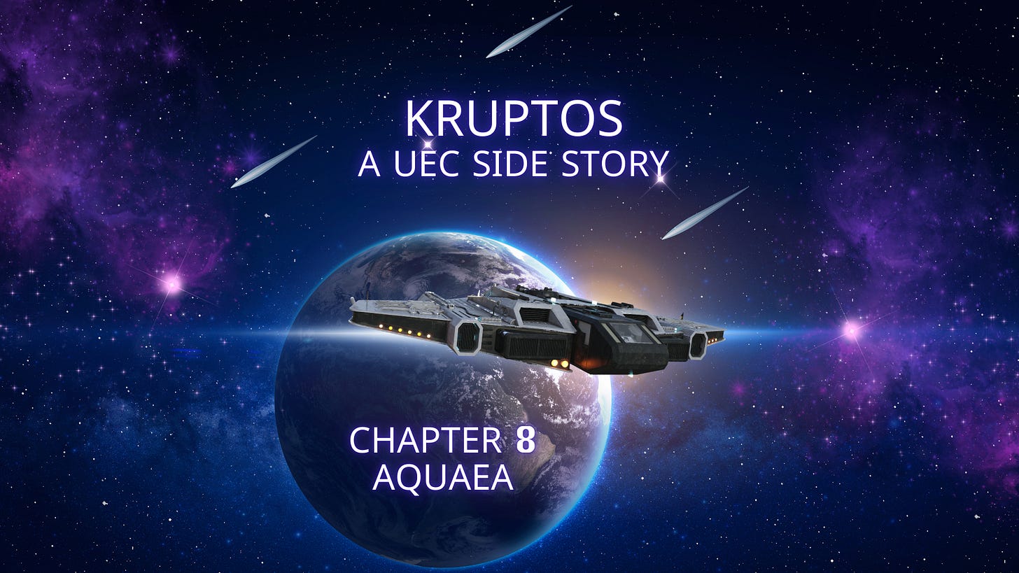 “Oh?” said Odysseus. “Then welcome. An enemy of Cain is a friend of Aquaea. Follow our lead, we shall help you dock your ship.”